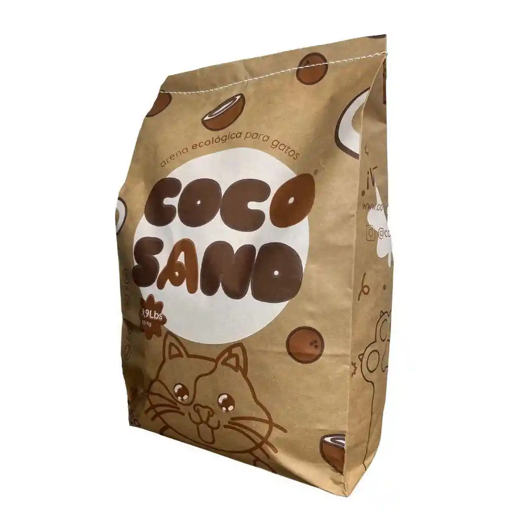 Arena sanitaria para gato, hecha de cáscara de coco, con carbón activado y aglomerantes naturales, puedes vertirla en el inodoro y tus gatos la amarán.