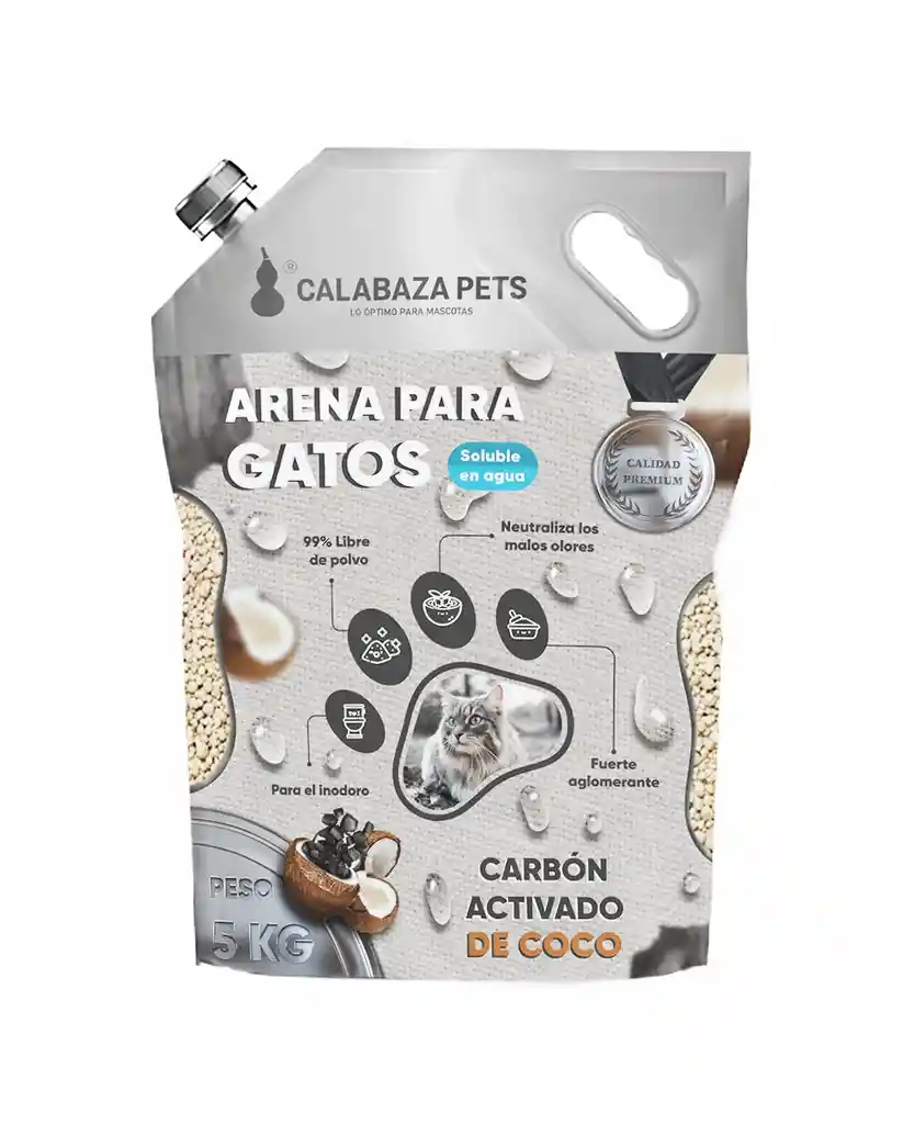Una arena de bentonita 100 % natural, soluble en agua, con fuerte capacidad de aglomeración y control de olores ideal para la limpieza del arenero de tu gato. Beneficios clave: Se disuelve en agua, lo que permite desecharla de forma más práctica en el inodoro o desagüe seguro. Gran poder aglomerante, lo que facilita la recogida de residuos y mantiene el arenero más limpio. Excelente control de olores, gracias a su fórmula premium y natural. Libre de polvo en gran medida 99 % libre de polvo, contribuyendo a un ambiente más higiénico para tu mascota y hogar.