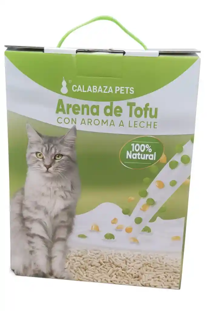 Arena 100% natural, biodegradable y ecológica a base de TOFU. Control superior de olores con un aroma suave a leche. La opción más limpia, natural y cómoda para el arenero de tu gato.