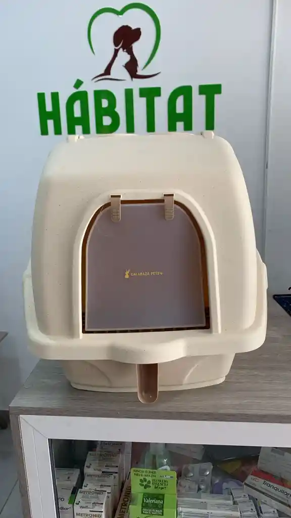 arenera amplia para gatos, con filtro de control de olores color beige y cafe