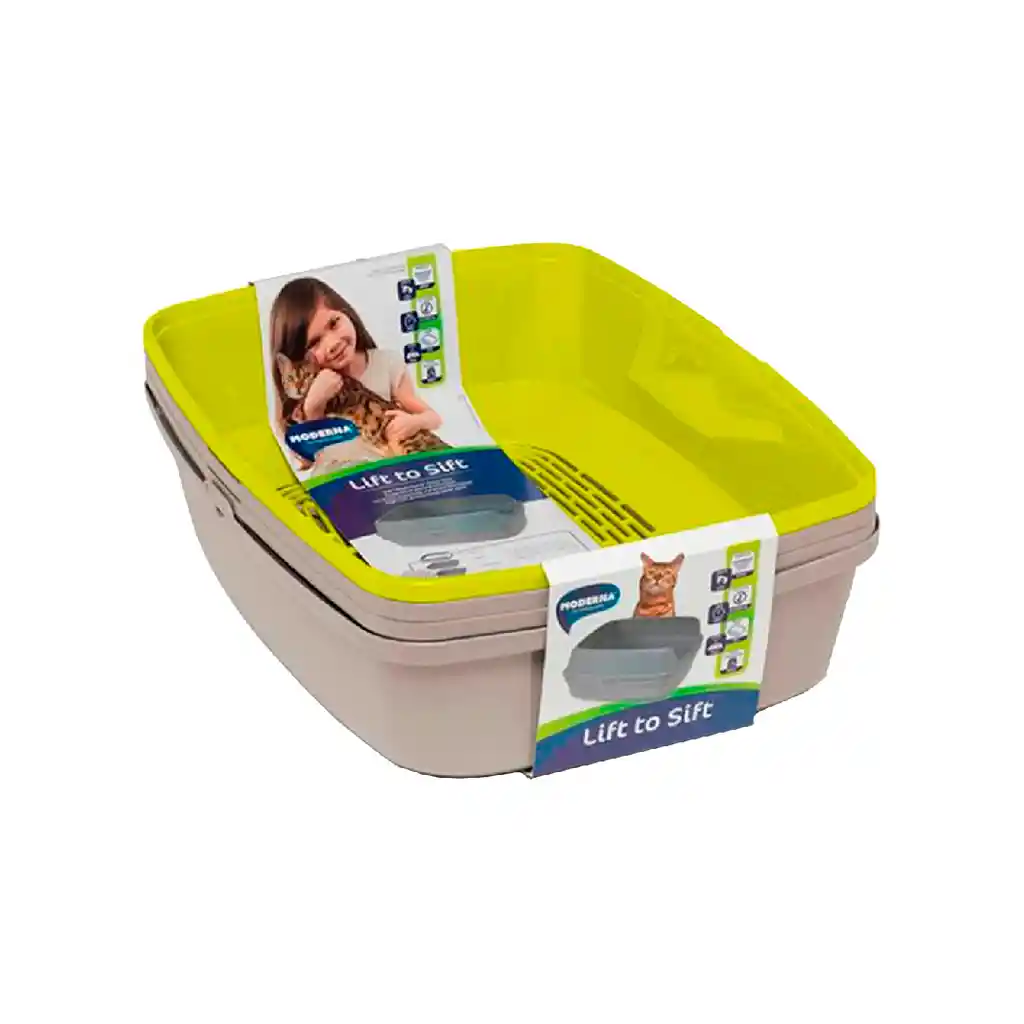 "Arenero que se limpia en segundos con un desperdicio mínimo. Dos bandejas y un cernidor para crear un sistema de limpieza rotativo. Toma unos segundos limpiar para obtener una caja de arena fresca y sin olores. No requiere bolsas de cuchara ni revestimiento. Bandejas sólidas de una pieza para evitar fugas. Los lados altos ayudan a prevenir la dispersión de basura. Fácil de limpiar con agua jabonosa tibia. Plástico premium 100% reciclable, no tóxico y sin BPA. MEDIDAS XL 57 x W 43 x H 27 cm "