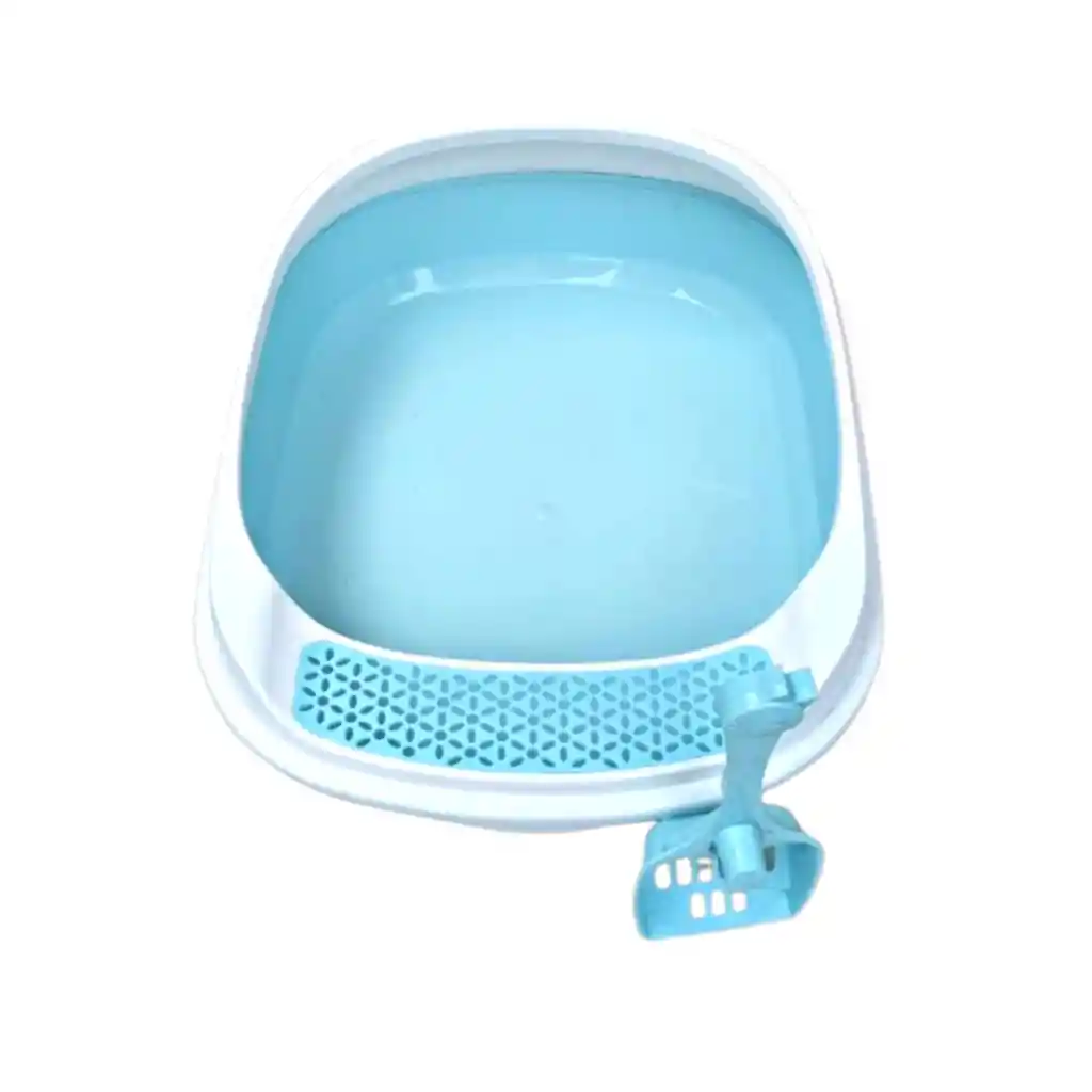 bandeja de arena para gatos, diseñada para facilitar la higiene de tu mascota. Tipo: Arenero descubierto para fácil acceso, ideal para gatitos pequeños o gatos mayores. Componentes: Incluye una pala a juego para limpiar los desechos sólidos fácilmente. Funcionalidad: Cuenta con un borde diseñado para reducir la dispersión de arena cuando el gato escarba. COLOR DISPONIBLE AZUL
