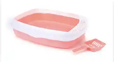Bandeja sanitaria para gatos con diseño práctico y funcional en tonos rosado y blanco. Ideal para mantener la higiene diaria de tu mascota de forma sencilla y rápida.