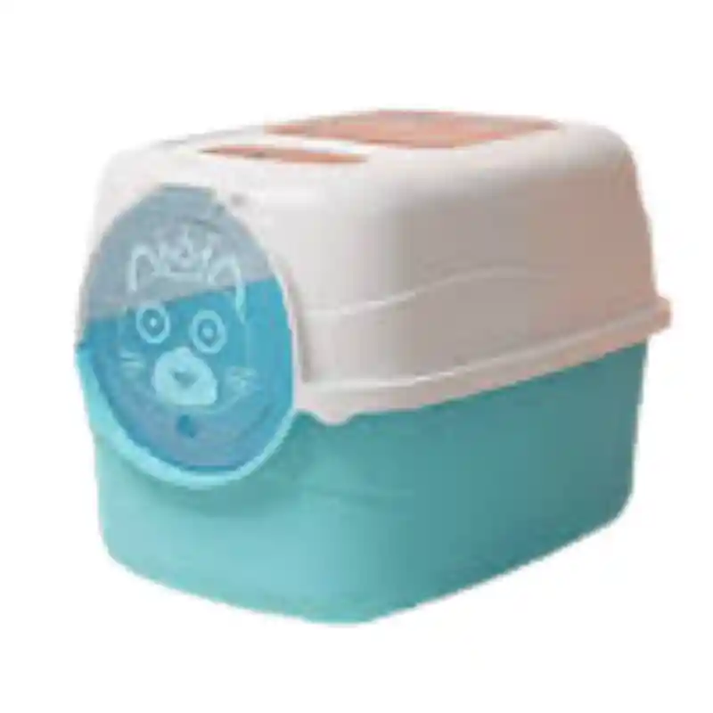 Arenero Cubierto Mediano Para Gato Con Doble Entrada, Filtro Y Pala Azul