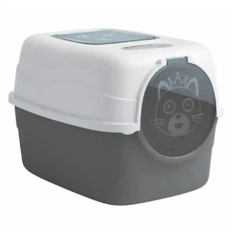 Arenero Cubierto Mediano Para Gato Con Doble Entrada, Filtro Y Pala Gris