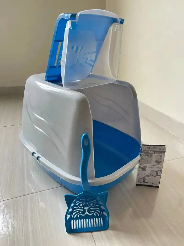 Hermosa arenera para tu bebe, totalmente cerrada lo que permite la privacidad de tus gatos y los hace sentir más seguros y cómodos. Con Filtro de carbón activado reduce el olor emitido dentro de la casa y mantiene el aire fresco. Diseño de salida de puerta vaivén, apertura frontal para fácil limpieza y pala recogedora Dimensiones: Ancho 40 cm Alto 38 cm Largo 52 cm