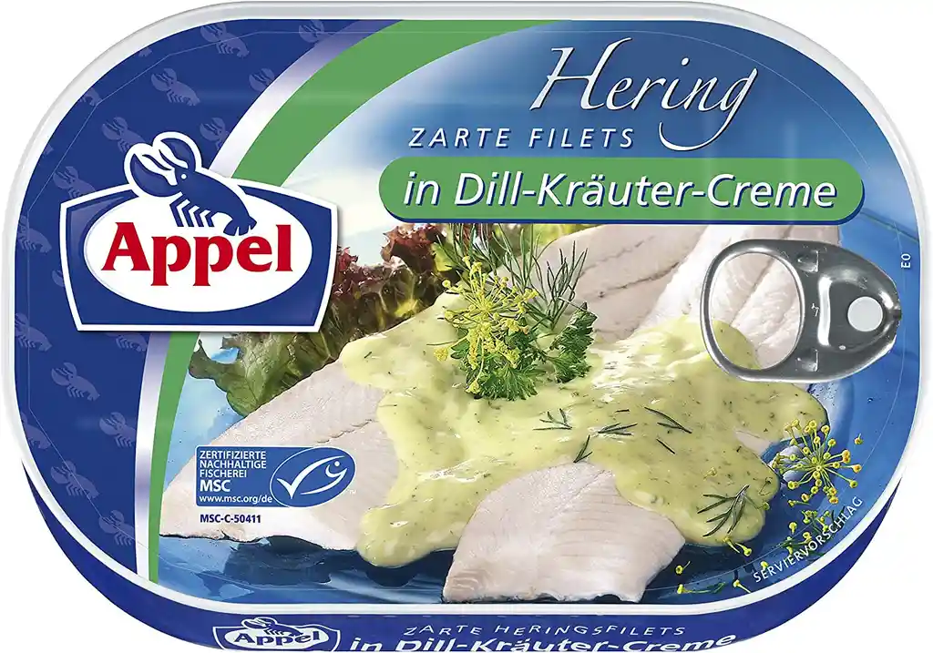 Arenque en filetes con eneldo y crema de finas hierbas , rica en ácidos grasos omega-3 | registro Invima: RSIA04158513 | fecha de vencimiento: 20/03/2025 | lote de fabricación 070079. Contenido 200 gramos | Producción y procesamiento con los más altos estándares de calidad en la costa del Mar del Norte en Alemania. *Información sobre alergia, contiene: soja, pescado, huevos, leche.