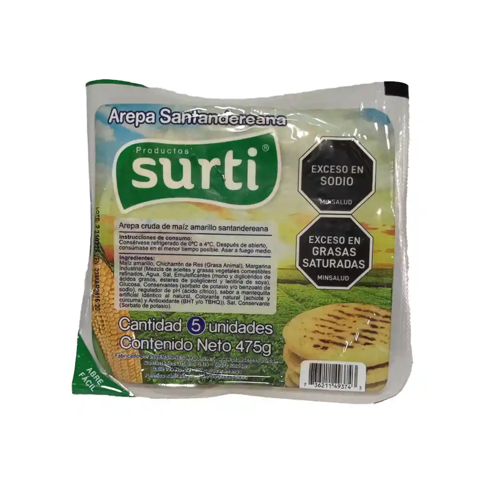 Arepa Santandereana marca Surtiarepa, paquete X 5und