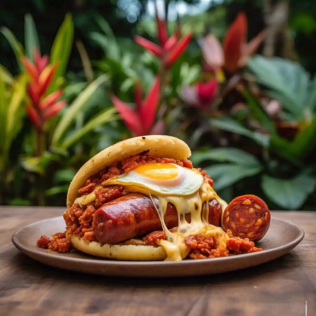 Arepa con Queso queso doble crema, Huevo al gusto y Chorizo