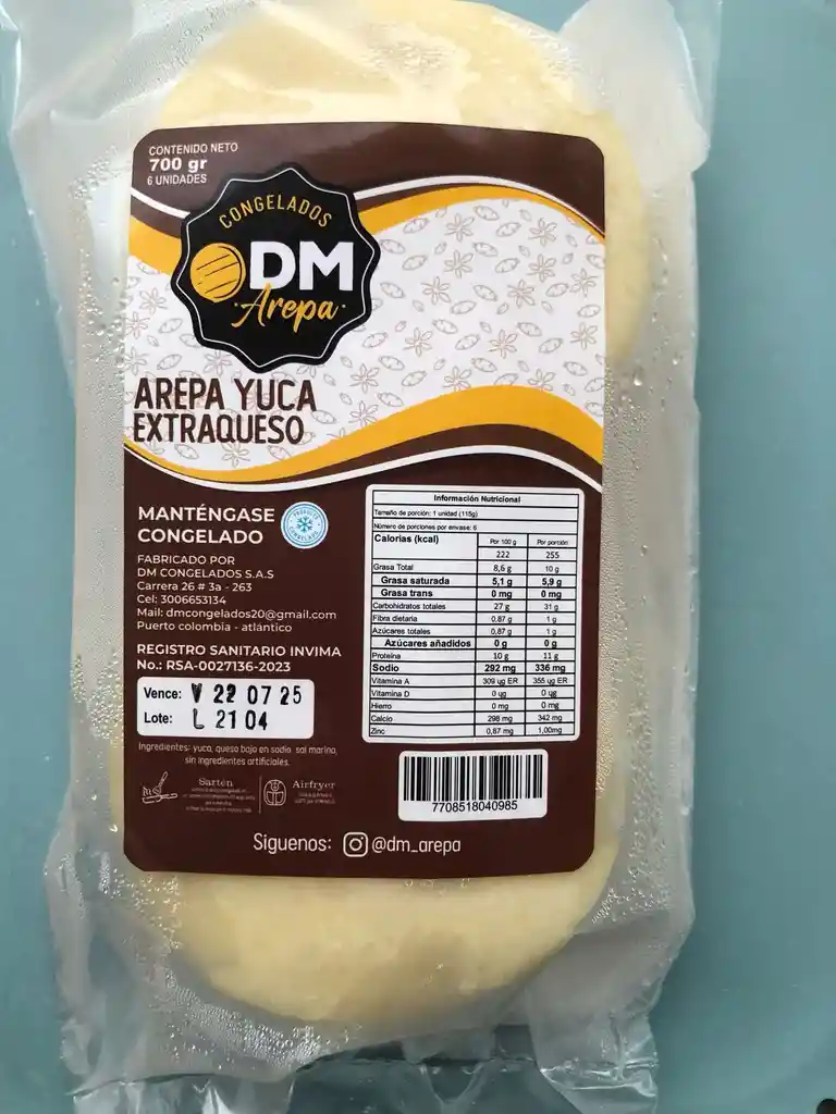paquete de yca rellena de queso x 6 unidades.