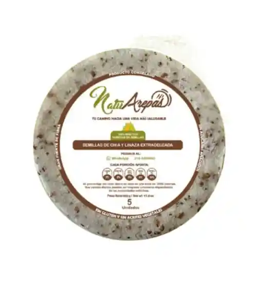 Paquete congelado x 5 unidades ¡Revitaliza tus comidas con un toque saludable! Nuestras arepas delgadas con semillas de chía y linaza de Nutriarepas son la opción perfecta para quienes buscan un alimento nutritivo y delicioso. Con un balance ideal entre sabor y salud, estas arepas son un excelente complemento para cualquier dieta. Características del Producto: – Ingredientes selectos: Elaboradas con maíz de alta calidad, semillas de chía y linaza, aportando un extra de nutrientes y fibra. – Textura ligera: Diseñadas para ser delgadas y crujientes, ofrecen una experiencia agradable en cada bocado. Beneficios: – Ricas en Omega-3: Las semillas de chía y linaza son conocidas por su alto contenido de ácidos grasos omega-3, que benefician la salud cardiovascular. – Alto contenido de fibra: Promueven una buena digestión y ayudan a mantener la sensación de saciedad. – Versatilidad en la cocina: Ideales para acompañar tus platos favoritos, rellenarlas con ingredientes saludables o disfrutar solas. Instrucciones de Preparación: 1️⃣ Recuerda *mantenerlas en el congelador* ❄️ hasta el momento de su consumo. 2️⃣ Toma la cantidad deseada y ponlas directamente en la plancha ó sartén de teflón previamente calentado y dejalas a temperatura baja ó media *hasta que se doren completamente por un lado antes de voltearlas* para garantizar una textura perfecta y un sabor delicioso. 🔥 3️⃣ Puedes acompañarlas con tus ingredientes favoritos, como carne 🥩, pollo 🍗, aguacate 🥑 o cualquier otra opción que desees. Disfrútalas en cualquier momento del día, ya sea como desayuno ☀️, almuerzo 🌙, cena 🌛 o simplemente como un delicioso snack. 🕒 ¡Haz tu pedido hoy y descubre el delicioso y saludable mundo de nuestras arepas delgadas con semillas de chía y linaza de Nutriarepas!