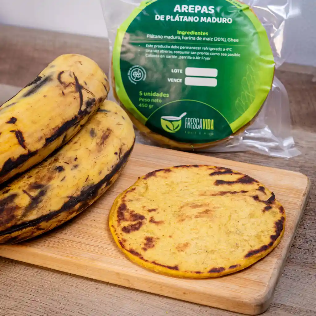 Arepas elaboradas con plátano maduro fresco y queso costeño natural. Dulces, saladas y listas para disfrutar sin conservantes ni aditivos.