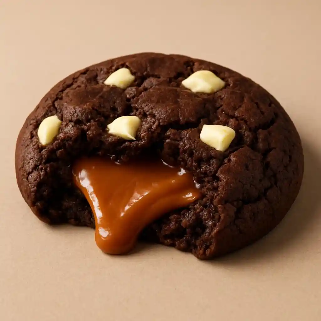 Decadencia garantizada: Chocolate negro rico con un relleno generoso del mejor arequipe, un clásico elevado. (Galleta de 70 g aprox.)
