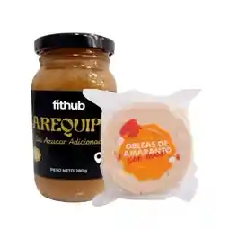 Contiene 2 Unidades. Fithub Arequipe Sin Azúcar 200 g + Fithub Obleas de Amaranto Nuez 70 g.