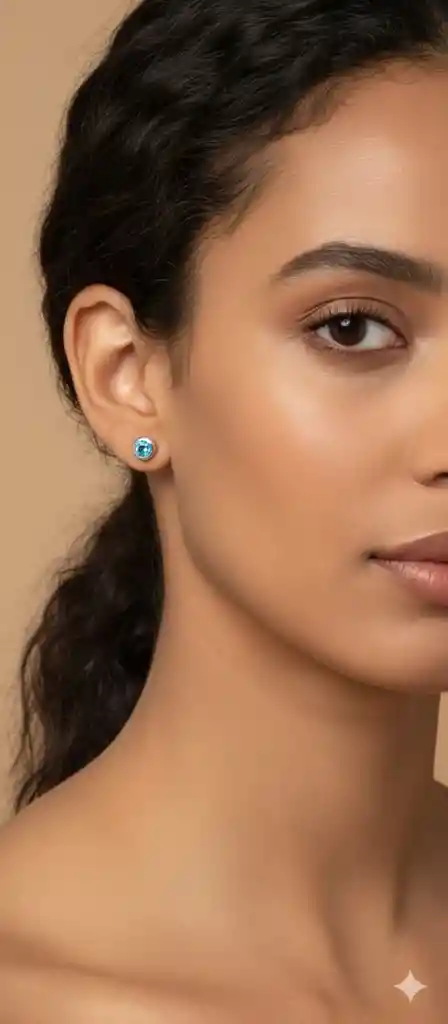 ARESTES: TOPOS DE CIRCON AZUL DE 3MM EN PLATA 925 Topos en plata – Circón azul Claro Topos elaborados en plata, diseño redondo acabado brillante. Medidas: 3mm Presentados en modelo , ideales para uso diario o regalo.