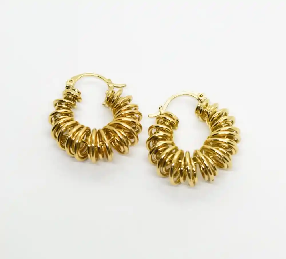 HERMOSOS ARETES DORADO EN FORMA DE CABLE GRANDE, ELABORADOS EN ORO GOLFIELD, PERFECTO PARA COMBINAR TU OUTFIT, LUCIRÁS HERMOSA, ÚNICA Y A LA MODA
