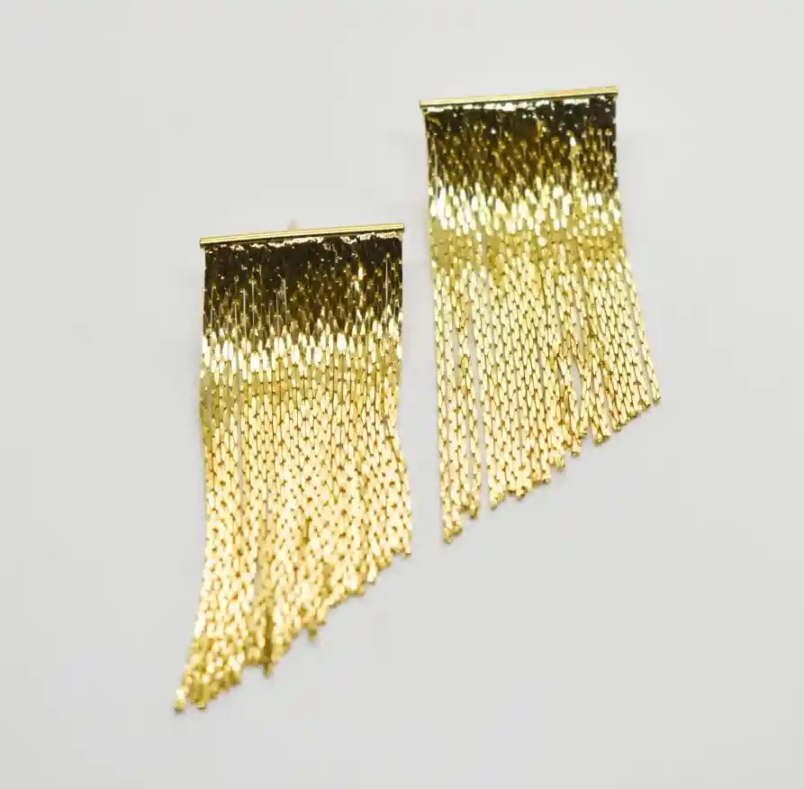 HERMOSOS ARETES DORADOS LARGOS, ELABORADOS EN ORO GOLFIELD, PERFECTO PARA COMBINAR TU OUTFIT, LUCIRÁS HERMOSA, ÚNICA Y A LA MODA