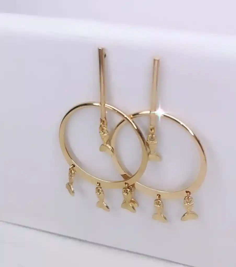 HERMOSOS ARETES DORADOS EN FORMA DE RED DE PECES, ELABORADOS EN ORO GOLFIELD, PERFECTO PARA COMBINAR TU OUTFIT, LUCIRÁS HERMOSA, ÚNICA Y A LA MODA