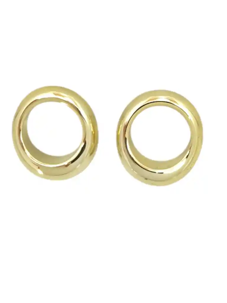 Arete en forma de círculo dorado, elegante y atemporal, ideal para añadir un toque sofisticado a cualquier look. Su diseño sencillo pero impactante resalta por su brillo y versatilidad, perfecto para ocasiones especiales o para el día a día.