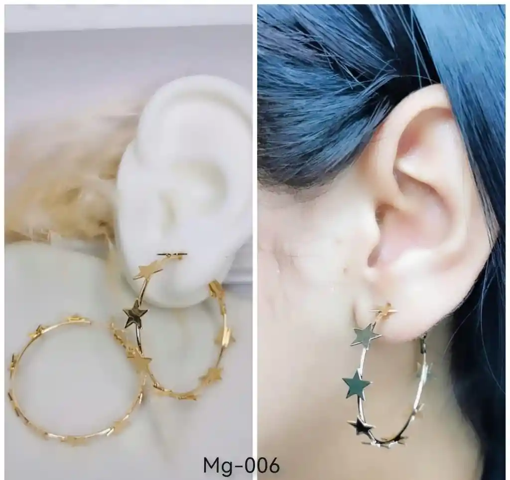 Hermoso arete dorado con estrellas pequeñas, único que se adapta a todos los looks y son perfectos para lucir a la moda.