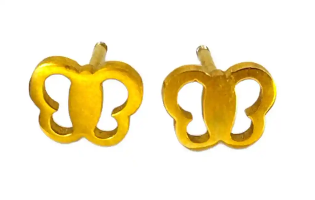 Presentación: Arete Topo (Cierre Seguridad) Material: Acero Quirúrgico Color:Dorado Diseño: Mariposa Producto Hipoalergénico. Tamaño 1 cm Caracteristicas: Es un material que no se oxida, no se oscurece con el tiempo, su tonalidad y brillo no se alteran. Es Antialérgico, la cantidad de níquel que tiene es residual por lo que en rarisimas ocasiones causa alergias. No necesita mantenimiento. Es un material duro, 1000 veces más duro que el platino y no se deforma