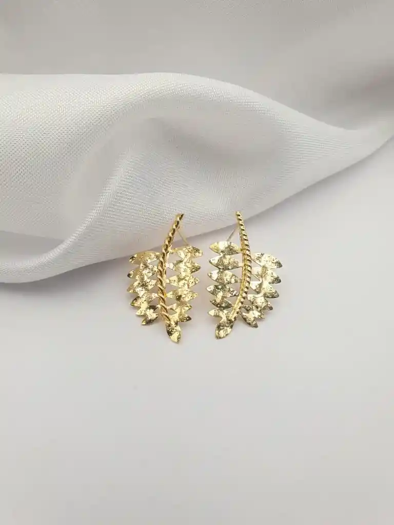 Arete en Forma de Hoja elaborado en Bronce con baño de Oro de 24 KL Medidas: 3,1 cm de Alto *1,8 cm de Ancho