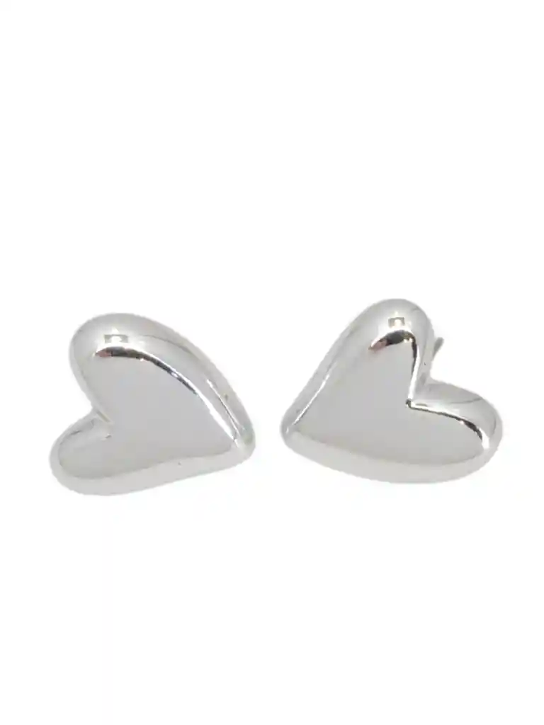 Arete en forma de corazón plateado, un diseño delicado y lleno de significado. Su acabado brillante en plateado le da un toque de sofisticación y frescura, perfecto para expresar cariño o para agregar un detalle romántico a tu look. Ideal para cualquier ocasión, desde el día a día hasta eventos especiales.