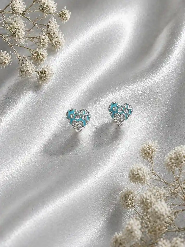 Arete topo corazon valiente en rodio plateado