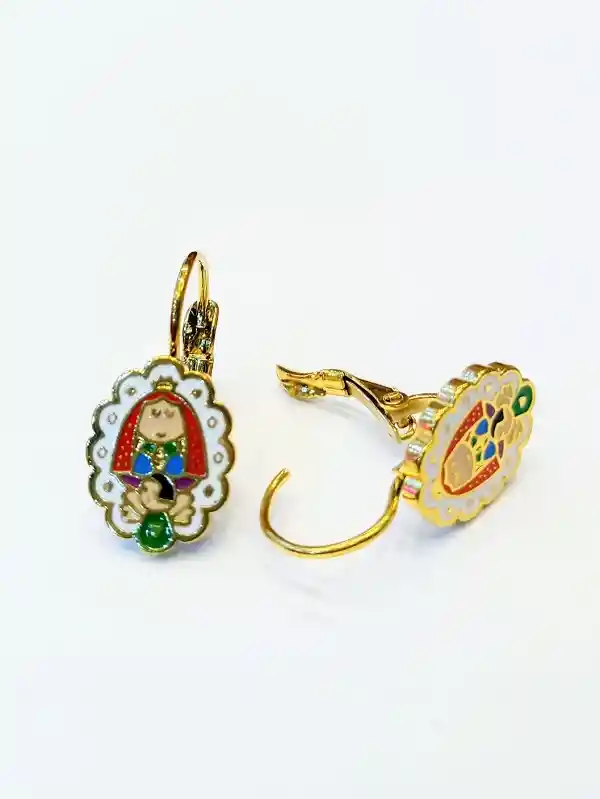 ARETE GANCHO ACERO QUIRURGICO DORADO HIPOALERGENICO ARETE ESMALTADO ALTO DETALE EN COLOR