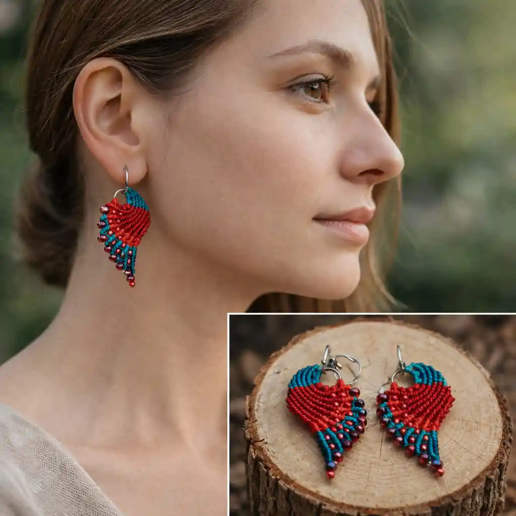 Aretes Alitas Cardenales ❤️🩵 Déjate envolver por la belleza de lo artesanal con estos delicados aretes inspirados en alas, una pieza que transmite libertad, elegancia y conexión con la naturaleza 🍃 ❤️🩵 Colores vibrantes y armoniosos: La combinación del rojo intenso ❤️ con el turquesa profundo 🩵 crea un contraste lleno de vida, evocando la energía y la serenidad en una sola pieza. 🌿 Diseño único y orgánico: Su forma de ala aporta un estilo sutil y sofisticado, ideal para resaltar tu esencia natural y auténtica. 🧵 Hechos a mano con dedicación: Tejidos cuidadosamente en hilo encerado de alta calidad, cada arete refleja el arte del macramé en cada detalle. 🔗 Cómodos y ligeros: Con pendiente en catalán y aro en acero inoxidable, pensados para brindarte comodidad durante todo el día. 💎 Detalles que brillan: Decorados con chaquiras y cristales que aportan un toque delicado y luminoso ✨ 📏 Medidas: Altura tejida: aprox. 5 cm Altura total: 6 cm 🌱 Cada par es único, creado con amor y paciencia, perfecto para quienes buscan un accesorio especial con alma artesanal. 📸 Los tonos pueden variar ligeramente según la luz y la fotografía. 💫 Luce elegancia, naturaleza y autenticidad en cada detalle.