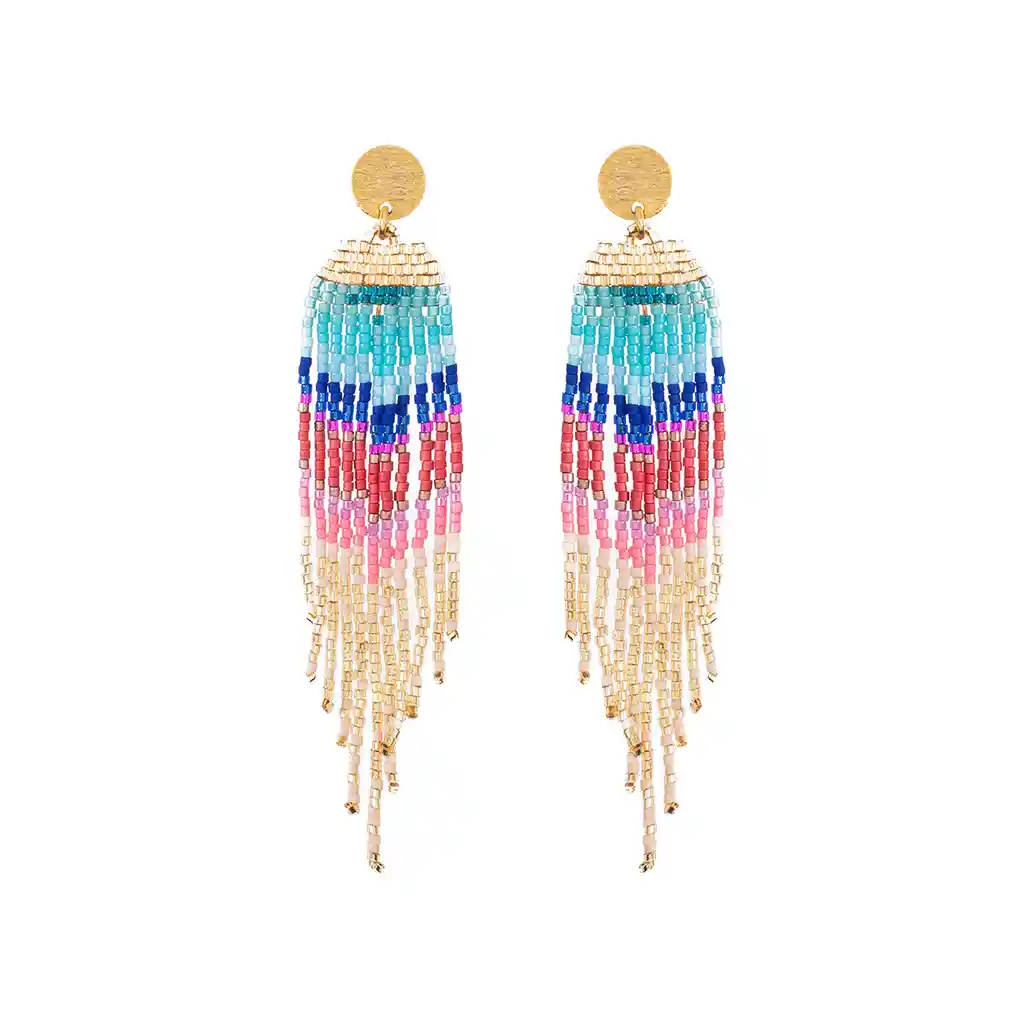 Aretes elaborados a mano con cristales Miyuki. Base de bronce y baño de oro. Disfruta de estos aretes en degrade multicolor, ideal para darle color a tu look.