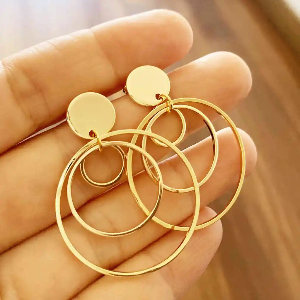 Aretes argollas doradas de bronce bañado en oro de 18k libre de níquel. Largo total 4cm