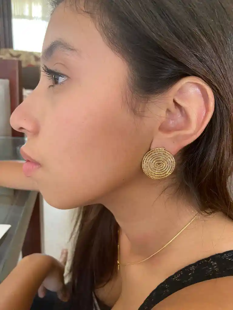 Hermosos y delicados Aretes en Bronce en Forma de Espiral Material: Bronce con baño de Oro Medidas: 3,0 cm de alto * 3,0 cm de Ancho