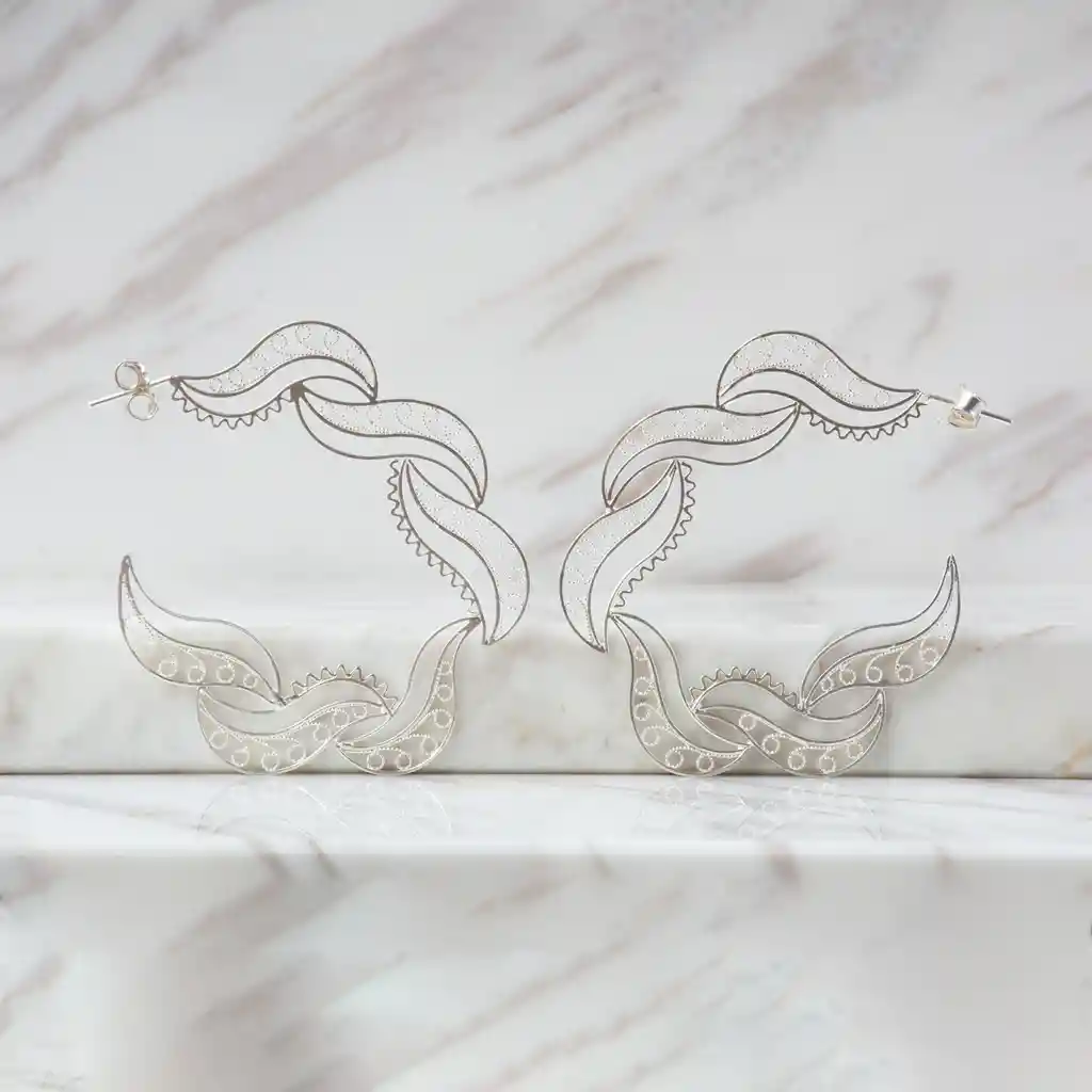 Aretes en filigrana candonga elaborados en plata 9.80 chapados en oro de 24 kilates u oro rosa y protección en laca cataforética. Parte de la colección FW'19 ELYSIA, inspirada en las coronas de laurel y las trenzas que adornaban a las antiguas griegas. Hechos totalmente a mano artesanalmente. Joya en filigrana Momposina. Filigree Jewelry. #IAMDAILA.