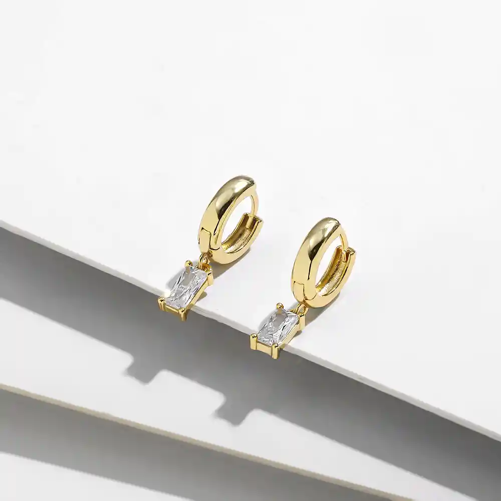 Aretes en plata 925 con piedra en Zircon. Medidas: Largo: 2 Cm, Ancho 1,1 Cm