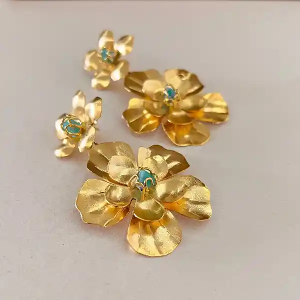 Diseño en bronce bañado en oro acompañado de piedras murallas de esmeralda