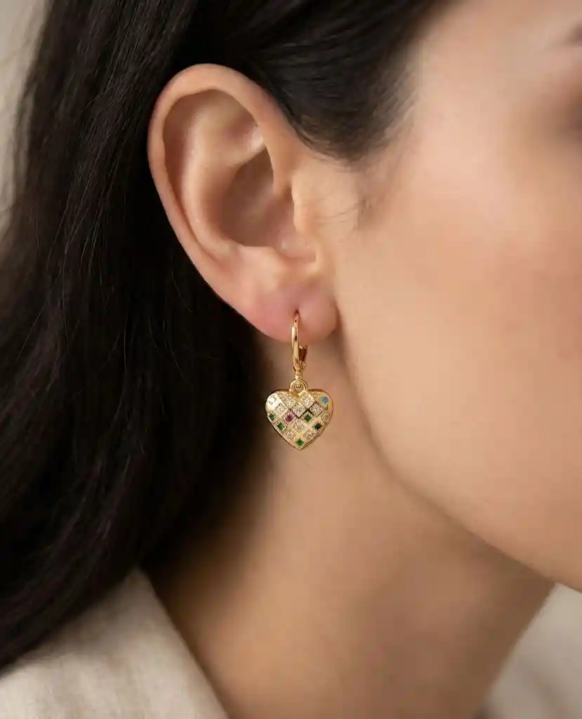 Los “Aretes Corazón Destello Dorado” son una pieza elegante en tono dorado, con pequeños cristales de colores que iluminan cada corazón. Su diseño simboliza un amor alegre y lleno de luz. “Sobre todas estas cosas vestíos de amor, que es el vínculo perfecto.” — Colosenses 3:14 Unos aretes que recuerdan que el amor es el brillo más hermoso que puedes llevar. ✨💛