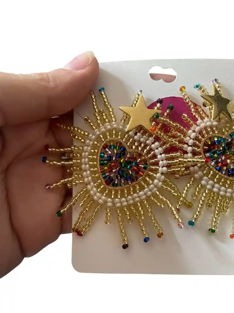 ¡Dale un toque de color a tu vida con estos adorables aretes de corazón en mostacilla con herraje en bronce con baño en oro de 24k! ✨ Hechos a mano con amor, cada par es único y vibrante, perfecto para expresar tu personalidad alegre y divertida. ¡Llévalos contigo y siente cómo tu día se llena de energía positiva!