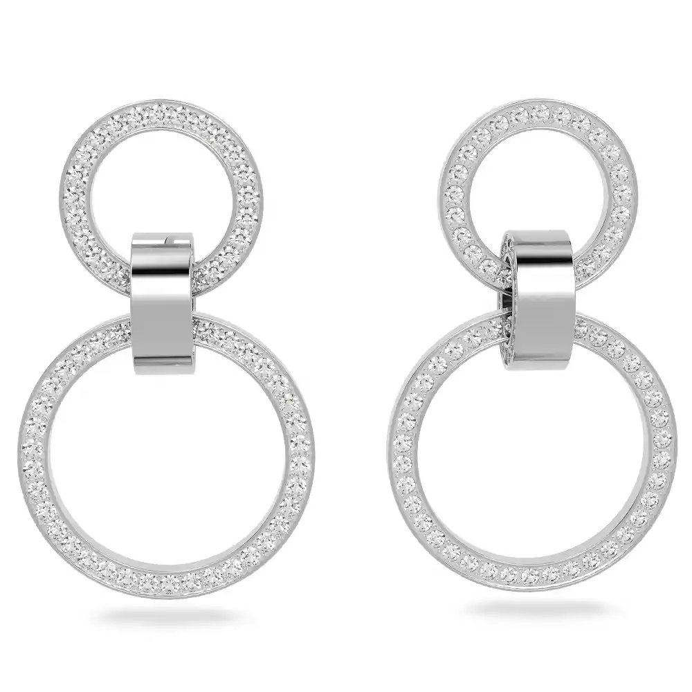 Llamativos E Inspiradores, Estos Pendientes De Araña Harán Que Seas El Centro De Atención. Los Círculos Bañados En Rodio Entrelazados Están Adornados Con Brillantes Cristales Pavé En Una Proeza De Técnica Artesanal Meticulosa Que Realzará Cualquier Atuendo.