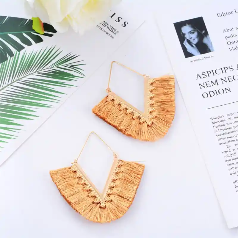 HERMOSOS ARETES DE FLECOS DORADOS EN FORMA DE ROMBO