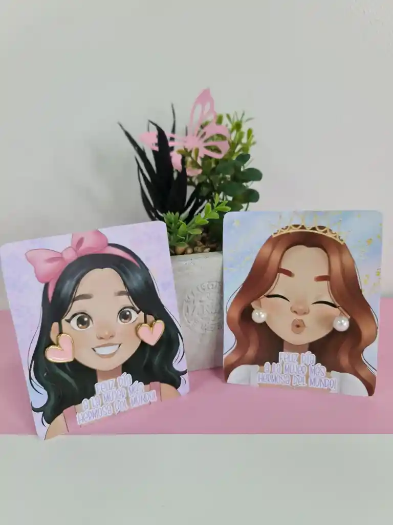 Hermosos aretes con tarjeta temática del Día de la Mujer, perfectos para sorprender con un detalle especial lleno de cariño y significado. Ideales para regalar a mamá, amigas, pareja o compañeras de trabajo. Presentación lista para entregar. Elaborado con amor por Los Regalos de Juanita. 💖