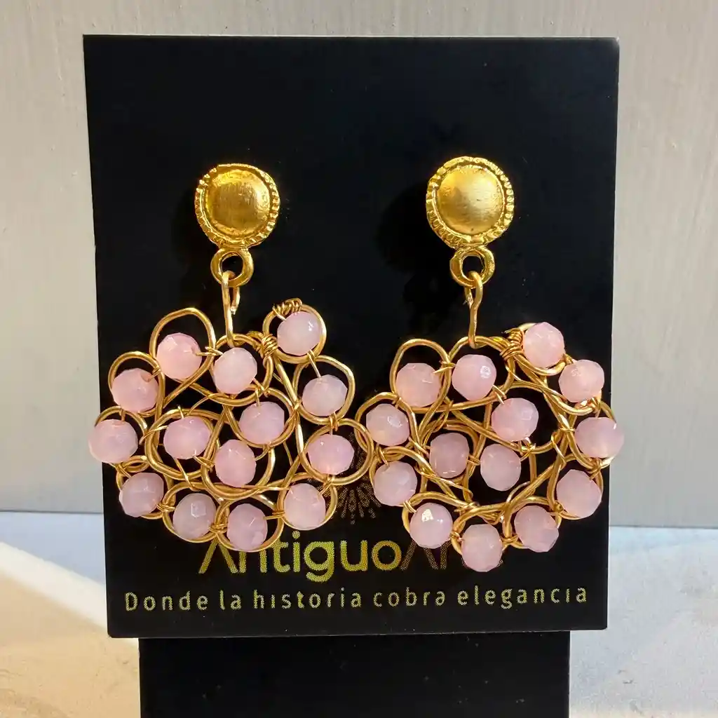 ARETES DISEÑO ALAMBRE MURANO ROSADO