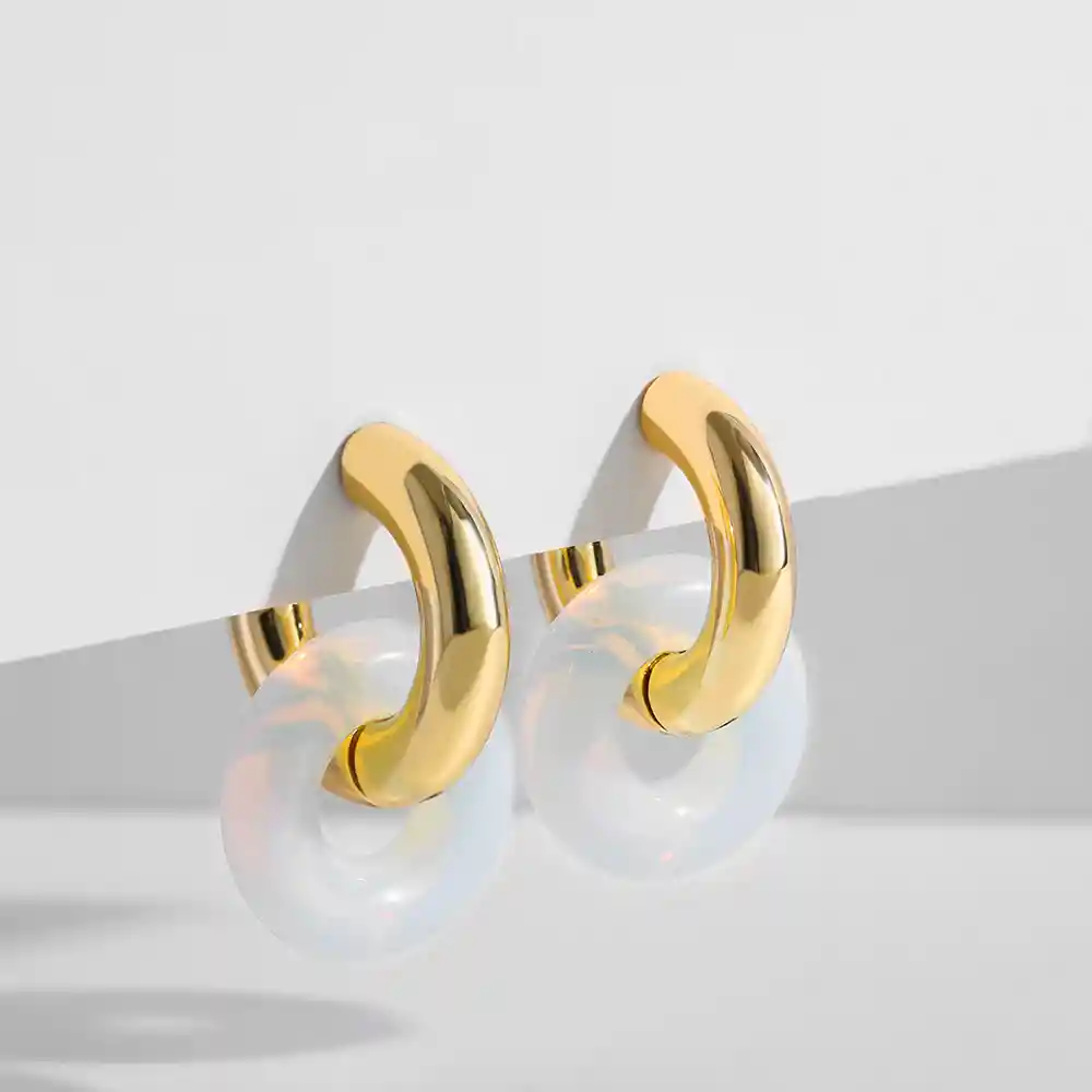 Aretes de aro gruesos dorados Cover gold para mujer, aretes con piedra. Largo: 3 Cm ancho 2 Cm