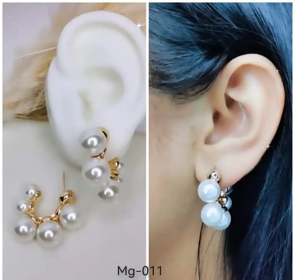 Hermosos aretes pequeños con varias perlas, que se adaptan a todos tus looks de tu día a día