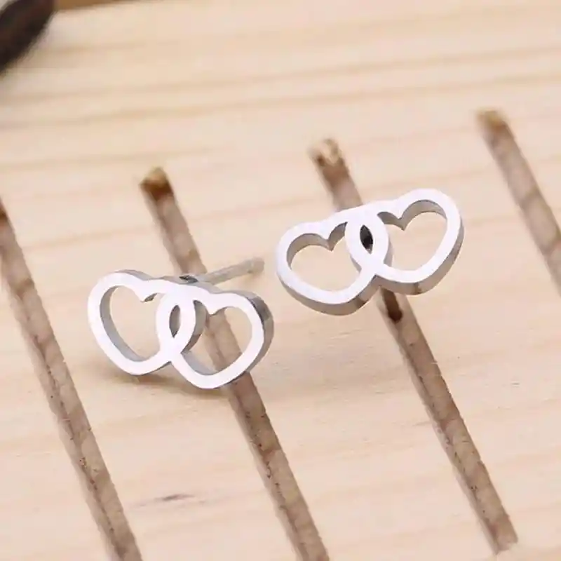 Presentación:Arete Topo (Cierre Mariposa) Material: Acero Quirúrgico Color: Plateao Diseño: Dos Corazones Producto Hipoalergénico. Tamaño: 6mm Caracteristicas: Es un material que no se oxida, no se oscurece con el tiempo, su tonalidad y brillo no se alteran. Es Antialérgico, la cantidad de níquel que tiene es residual por lo que en rarisimas ocasiones causa alergias. No necesita mantenimiento. Es un material duro, 1000 veces más duro que el platino y no se deforma.