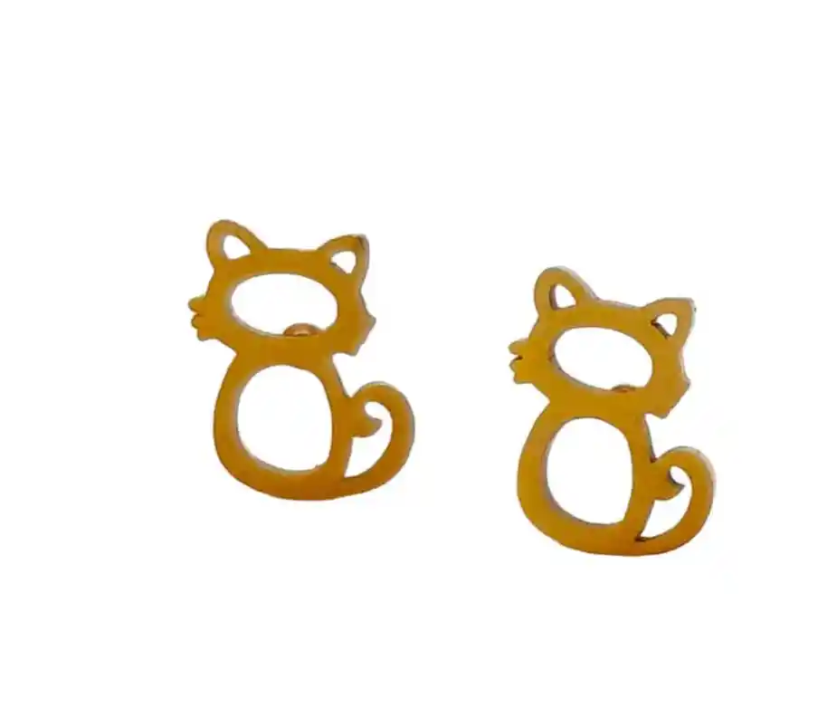 Presentación: Arete Topo (Cierre Mariposa) Material: Acero Quirúrgico Color: Dorada Diseño: Gato Labrado Producto Hipoalergénico. Tamaño: 6 mm Caracteristicas: Es un material que no se oxida, no se oscurece con el tiempo, su tonalidad y brillo no se alteran. Es Antialérgico, la cantidad de níquel que tiene es residual por lo que en rarisimas ocasiones causa alergias. No necesita mantenimiento. Es un material duro, 1000 veces más duro que el platino y no se deforma.