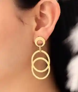 Pendientes Geométricos "Nova" Estos aretes de diseño "Nova" combinan la sencillez y el arte contemporáneo. Presentan un disco minimalista en la parte superior del lóbulo, del que cuelgan dos círculos entrelazados que aportan movimiento y profundidad. Con su acabado dorado pulido.