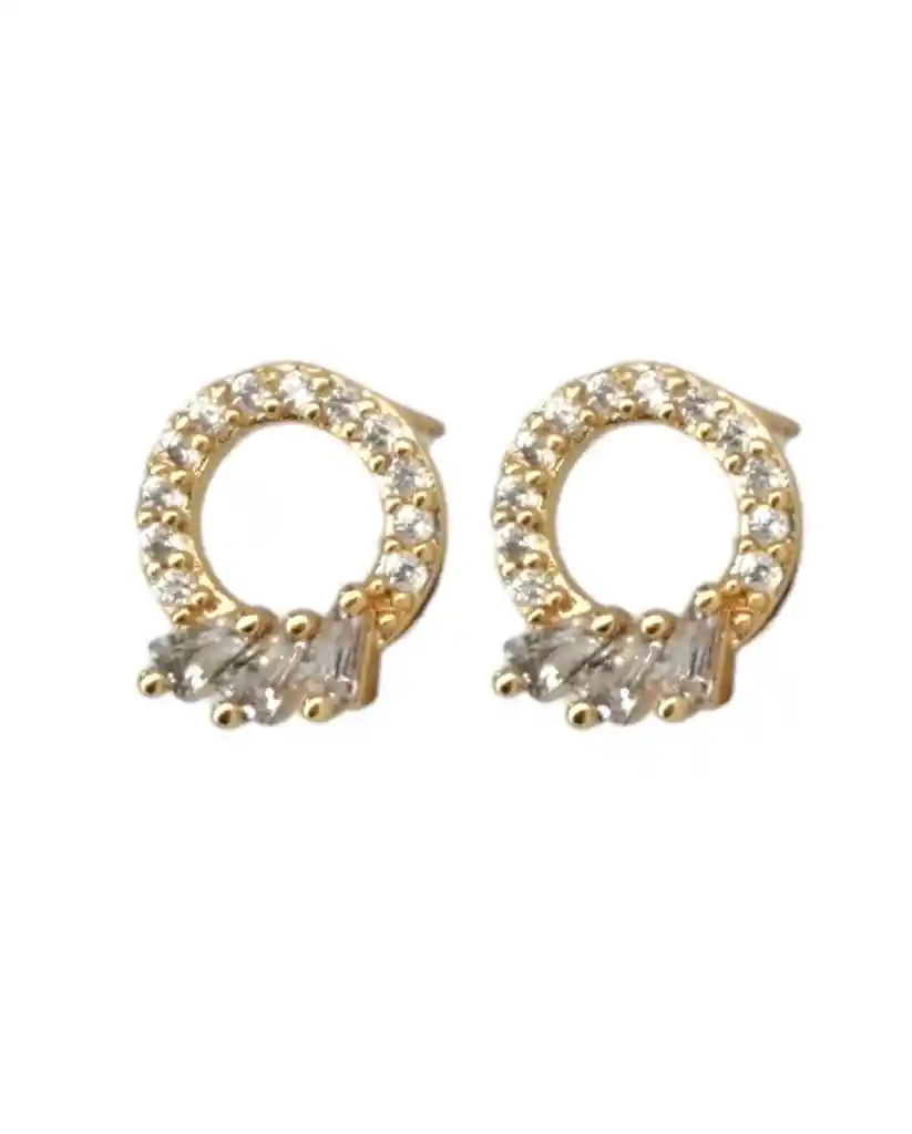 Presentación: Tipo Topo (Cierre Mariposa) Material: Acero Quirúrgico Color: Dorado Diseño: Circular con circones Producto Hipoalergénico. Caracteristicas: Es un material que no se oxida, no se oscurece con el tiempo, su tonalidad y brillo no se alteran. Es Antialérgico, la cantidad de níquel que tiene es residual por lo que en rarisimas ocasiones causa alergias. No necesita mantenimiento. Es un material duro, 1000 veces más duro que el platino y no se deforma.