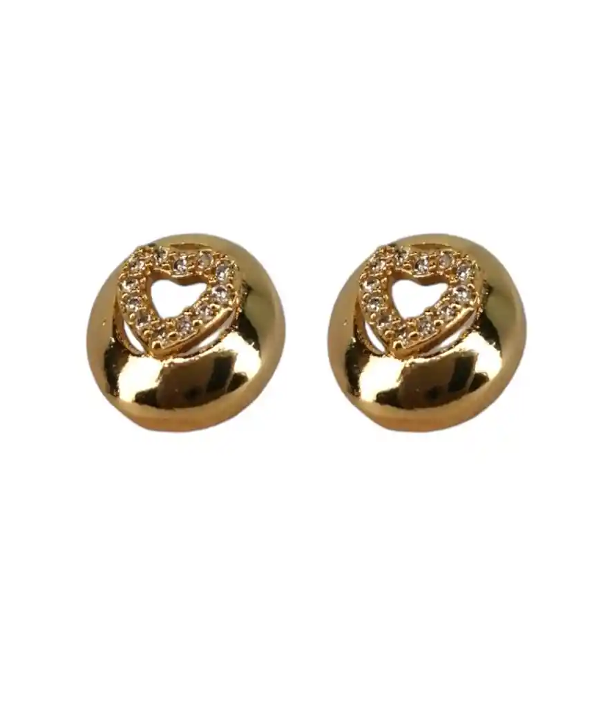 Presentación: Tipo Topo (Cierre de seguridad) Material: Acero Quirúrgico Color: Dorado Diseño: Diseño circular con corazon y circones Producto Hipoalergénico. Caracteristicas: Es un material que no se oxida, no se oscurece con el tiempo, su tonalidad y brillo no se alteran. Es Antialérgico, la cantidad de níquel que tiene es residual por lo que en rarisimas ocasiones causa alergias. No necesita mantenimiento. Es un material duro, 1000 veces más duro que el platino y no se deforma.