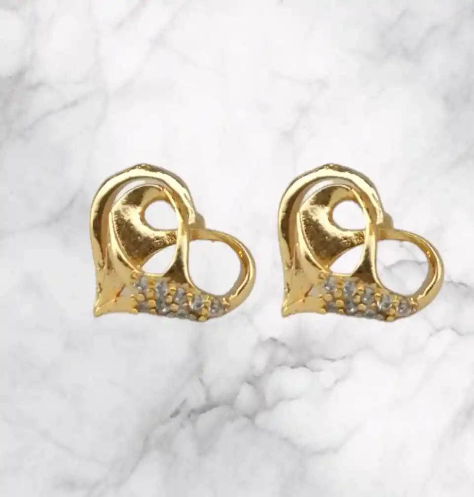 Presentación: Tipo Topo (Cierre Mariposa) Material: Acero Quirúrgico Color: Dorada Diseño: corazon con circones Producto Hipoalergénico. Caracteristicas: Es un material que no se oxida, no se oscurece con el tiempo, su tonalidad y brillo no se alteran. Es Antialérgico, la cantidad de níquel que tiene es residual por lo que en rarisimas ocasiones causa alergias. No necesita mantenimiento. Es un material duro, 1000 veces más duro que el platino y no se deforma.